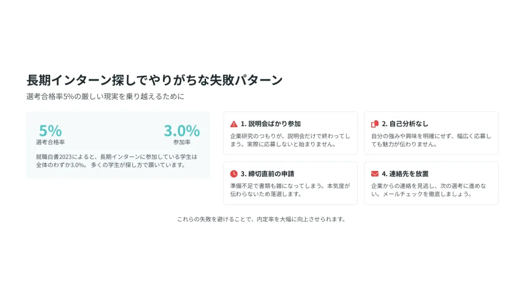 多くの学生が見落としがちなポイントですが、準備不足での応募は選考通過率を大幅に下げてしまいます。